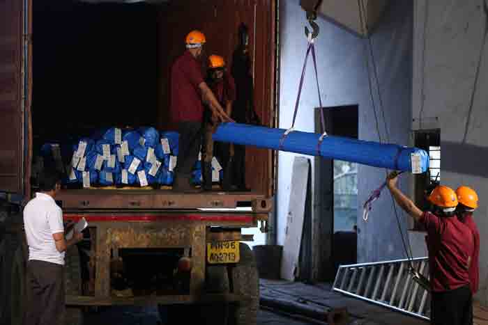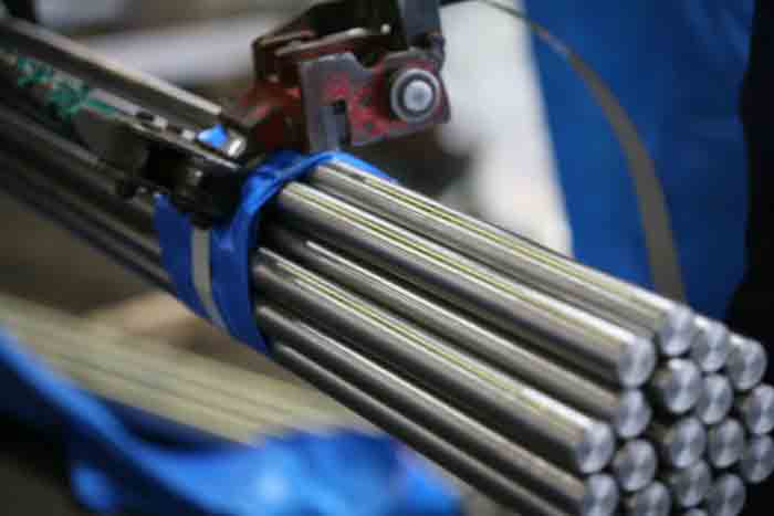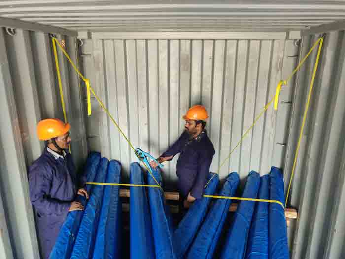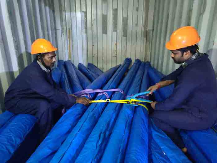 At SKM we take utmost care while packing and shipping the material. As per our quality policy series of color coding is followed for different grades. Alongwith the color code we also provide hard stamping of heat no., grade and size at the end of each bar for bigger diameters. Laminated tags with details is attached with each bundle wrapped with HDPE alongwith metal strapping. Each bundle is provided with slinges for easy unloading. Lashing is done to secure the material inside the container.